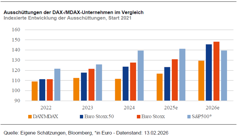 Die Unternehmen aus Dax und MDax werden voraussichtlich fürs Fiskaljahr 2025 insgesamt rund 63,7 Milliarden Euro an Dividende ausschütten. Das sind fünf Prozent mehr als im Vorjahr.