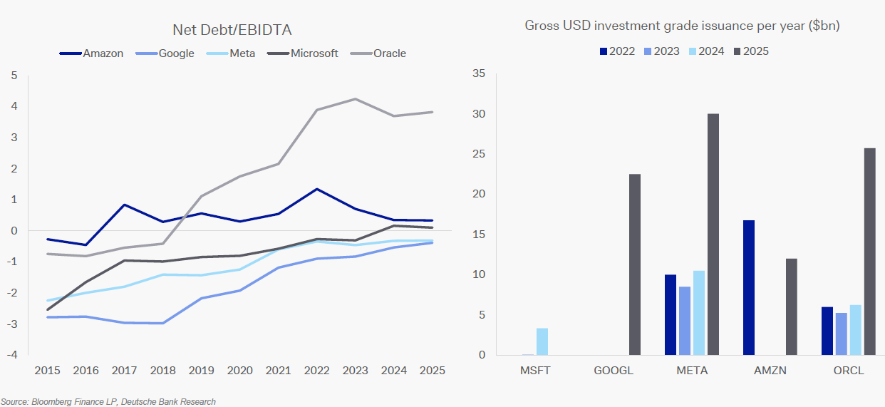Bei Oracle haben die Anleger offensichtlich deutliche Zweifel: Die Aktie hat seit September rund 40 Prozent verloren. Allein nach der Vorlage der Quartalszahlen ging es um elf Prozent nach unten. Oracle könnte sich bei seiner KI-Wette tatsächlich übernommen haben. Die Verschuldung ist deutlich gestiegen.