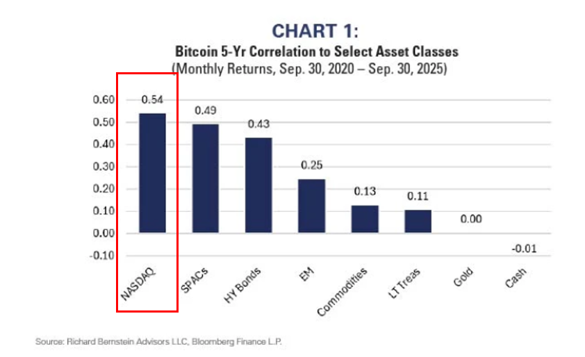 Die Parallele zwischen Nasdaq und Bitcoin in den vergangenen Jahren ist unverkennbar (siehe Titelchart). Sowohl Tech-Aktien als auch die Krypto-Währung sind hoch korreliert (siehe auch den zweiten Chart). Auffällig ist jedoch, wie bei Charts seit einiger Zeit auseinander gehen. Die große Frage ist nun: Ist das der Vorbote einer heftigen Korrektur beim Nasdaq – oder steht der Bitcoin vor einer gigantischen Jahresendrallye, um die Lücke wieder zu schließen?