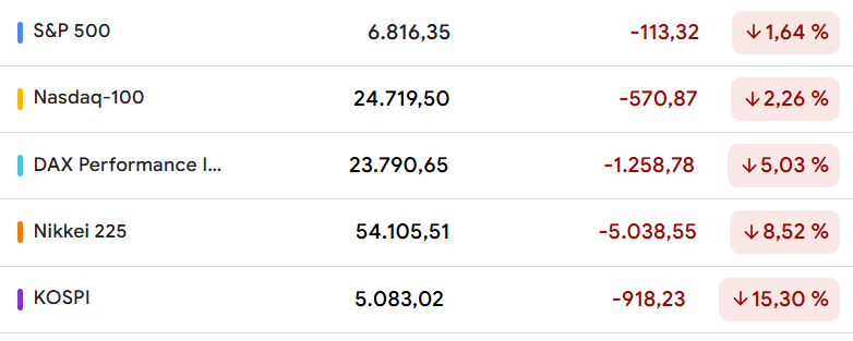 Die Märkte sind weiterhin auf Richtungssuche. Die Verluste sind allerdings sehr ungleich verteilt. Das Minus an den amerikanischen Börsen hält sich bislang im Rahmen. US-Anleger kommen bislang relativ glimpflich davon. Das verringert den Druck auf US-Präsident Trump, seine Politik zu überdenken. Es sind vor allem die asiatischen Anleger, die gerade eine Menge Geld verlieren. Der südkoreanische Kospi verzeichnete allein am Mittwoch ein Minus von knapp zwölf Prozent.
